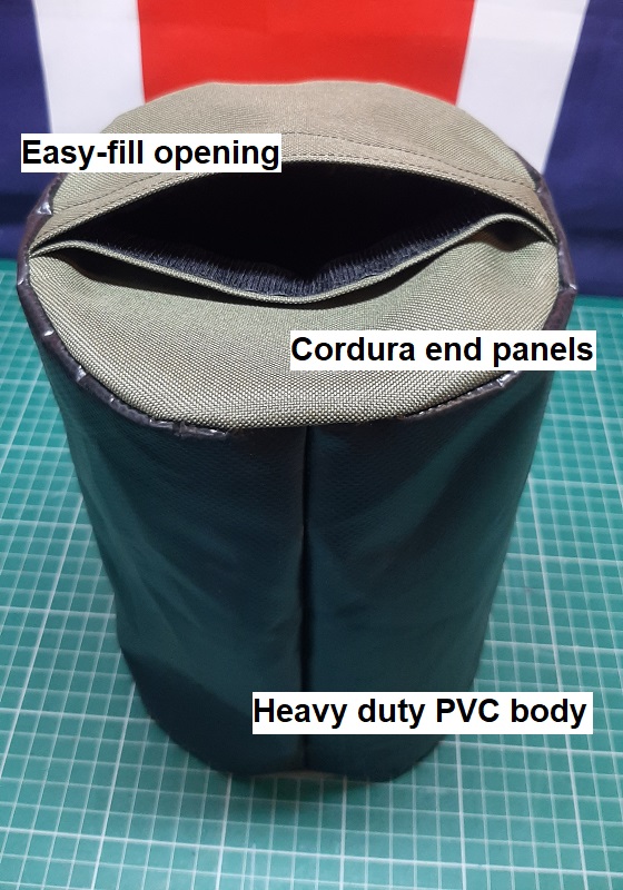 Both sizes are constructed from Heavy Duty PVC body that is hard wearing and easy to clean with Cordura type fabric ends that come in a range of colours and patterns (see listing).